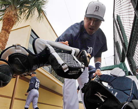 LAKELAND, Florida -- Prácticamente un mes desde que el venezolano Víctor Martínez se presentó a los Entrenamientos de Primavera de los Tigres con todo su equipo de receptor, por fin tuvo la oportunidad de colocárselo en un partido. Ahora cabe la posibilidad de que no tenga que esperar mucho tiempo para hacerlo de nuevo en la temporada regular.