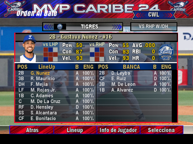 Esta es nuestra 1era version de de un mod basado en el MLB 2K12, el cual llamamos 2K Caribe 2016. Hemos modificado casi la totalidad del juego, solo nos faltan algunos detalles que son imposibles de cambiar pero seguiremos tratando de hacerlo. En comparacion con el MVP 2005, el MLB 2K ofrece muchas ventajas: - Cero Crash:. asi como lo leen, los crash son casi imposible que sucedan debido a que es un juego mas moderno y asi aprovecha las ventajas de las Pc actuales en comparacion con las del 2005. - Mejores graficos: obviamente los graficos seran mejores. - Mejor resolucion de pantalla. Puedes jugar completamente en resolucion Full HD 1920 x 1080 sin problemas. - Mas personalizacion de los jugadores y equipos: cada jugador puede tener su propio calzado diferente de los demas integrantes del equipo. - Calendario de 162, 104 o 52 juegos. El cual puedes jugar sin tener crash al final de la serie regular. - Mas animaciones en los estadios, jugadores, etc. Por ejemplo cuando un jugador da un fly al infield se incomoda y tira el bate al suelo. - Muchas otras mejoras. Esta version 2K Caribe 2016 1.1 contiene lo siguiente: - Roster de los equipos al finalizar la serie regular 2016.