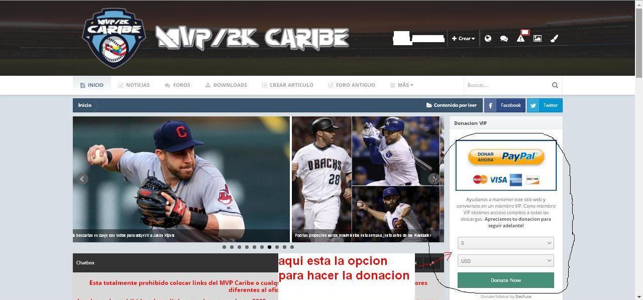 Guaro1379 77 Informar mensaje Publicado el December 17, 2017 MVP Caribe surgió de la idea de tener un vídeo juego de la ligas invernales del caribe. Varios fans nos trazamos el objetivo de lograrlo creando una modificación total del juego MVP Baseball 2005 y brindarla totalmente gratuita a todos los fanáticos del béisbol caribeño. Desde el 2007 hemos estado creando nuestra modificación ano tras ano sin defraudar a nuestros seguidores. Pero ha llegado el momento de seguir avanzando y pasar a un nuevo nivel de tecnología y gráficos. Por eso desde principios del 2016 hemos invertido tiempo, recursos y dinero en crear el 2K Caribe 2016. Hemos decidido que el 2K Caribe 2016 y sus posteriores versiones y/o actualizaciones solo estarán disponibles para los usuarios VIP. Los usuarios VIP serán los que hagan una donación de 5 dolares o mas a través de Paypal y tendrán los siguientes beneficios: - Acceso a descargar el 2K Caribe 2016 y futuras versiones y/o actualizaciones. - Sin limite de descargas diarias en la pagina. - Sin limite de ancho de banda para las descargas. Los usuarios normales seguiran funcionando en la pagina como siempre pero tendrán estas limitaciones: - No tendrán acceso a descargar el 2K Caribe.- Podrán descargar todo de forma normal.- Limite diario de 3 descargas por día.- Ancho de banda limitado. Quizas se pregunten que es mucho hacer una donación de solo 5 dolares, pero desde el 2007 nosotros hemos costeado todo en mvpcaribe.com: - Pago del web hosting. - Pago del sistema web de Invision Power. - Pago del Antivirus para la Web. Ademas para la creación del 2K Caribe hemos comprado licencias para usar los programas RED MOD Center y REDitor II. Todos esos han sido gastos que hemos cubierto de nuestros bolsillos, por lo que para el 2K Caribe pedimos una donación de 5 dolares. MVP/2K Caribe Team. Compartir este mensaje Enlace a mensaje Compartir con otras webs